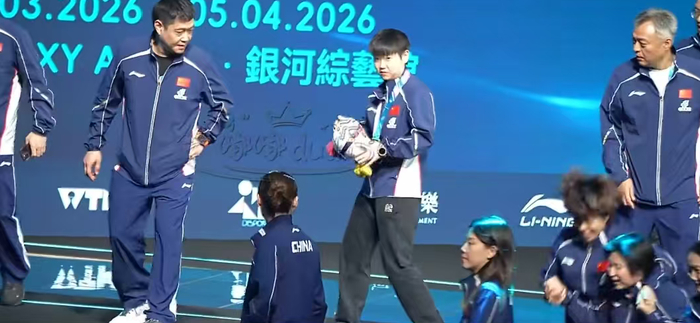夺冠合影,孙颖莎一瘸一拐,无法走下高台阶,谁注意邱贻可举动|王楚钦|何卓佳|WTT重庆冠军赛|林诗栋|王曼昱_新浪新闻